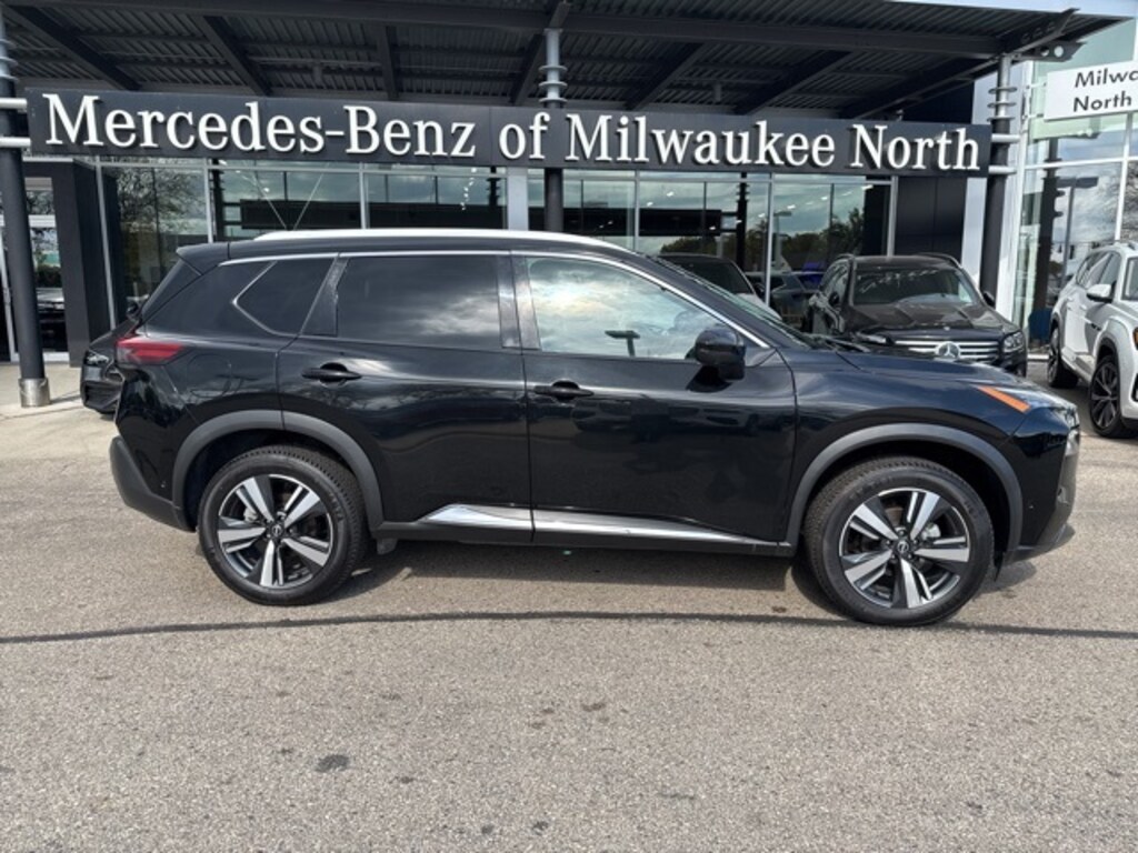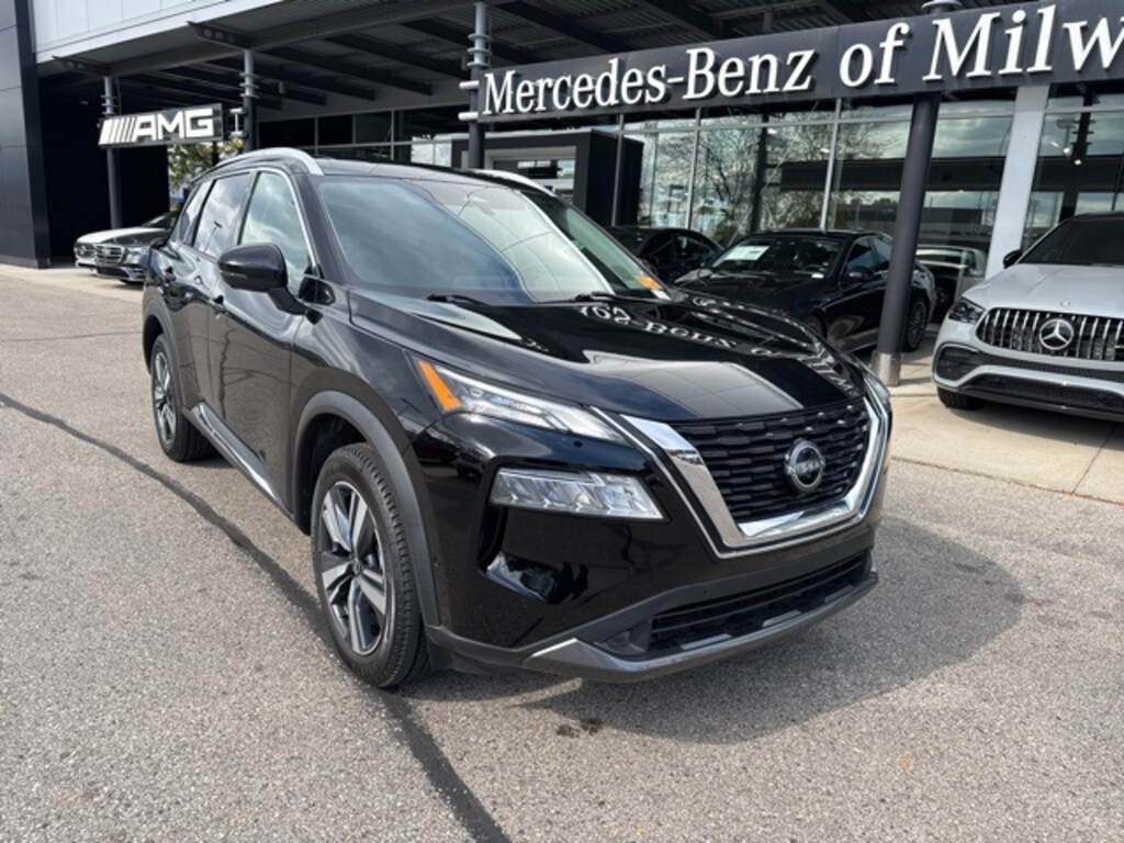 -New Tires, 10 YEAR 150,000 MILE LIMITED ENGINE WARRANTY, ONE OWNER, Experience refined performance and luxury with this 2023 Nissan Rogue SL All-Wheel Drive, featuring the coveted Premium Package, now available at Mercedes-Benz of Milwaukee North. Finished in a sleek black exterior with a matching black interior, this AWD SUV blends sophistication with versatility, ideal for tackling Wisconsin's ever-changing weather. The Premium Package enhances your drive with upscale amenities such as a panoramic moonroof, Bose premium audio system, quilted leather-appointed seats, and advanced ProPILOT Assist for semi-autonomous driving. Located in Milwaukee, WI, this Rogue SL delivers exceptional comfort, cutting-edge technology, and top-tier safety��"all backed by the trusted service of a premier Mercedes-Benz dealership. Don’t miss your chance to own this like-new 2023 Nissan SL AWD��"schedule your test drive today!, AWD, 19" Aluminum Alloy Wheels, Bose Premium Audio System, Brake assist, Front, Side & Rear Sonar, Heated front seats, Heated steering wheel, Motion Activated Power Liftgate, Power Liftgate, Power moonroof, ProPILOT Assist w/Navi-link, Radio: AM/FM NissanConnect w/Navigation, Rear Door Sunshades, Rear Parking Sensors, SL Premium Package, Traffic Sign Recognition, Tri-Zone HVAC. Odometer is 7427 miles below market average! Priced below KBB Fair Purchase Price!