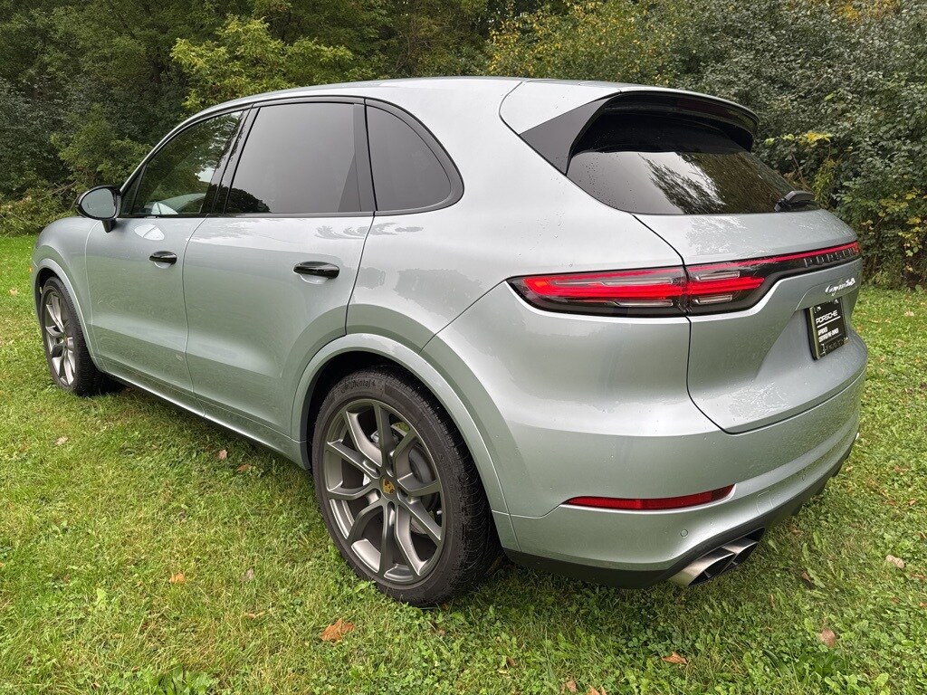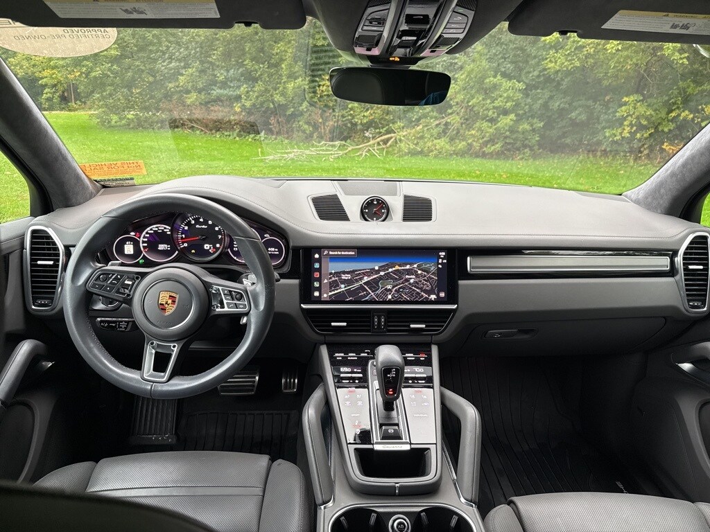 18-Way Adaptive Sport Seats w/Memory Package, Leather, 14 Speakers, 4-Wheel Disc Brakes, ABS brakes, Adaptive suspension, Air Conditioning, Alloy wheels, AM/FM radio: SiriusXM, Apple CarPlay, Audio memory, Auto tilt-away steering wheel, Auto-dimming door mirrors, Auto-dimming Rear-View mirror, Auto-leveling suspension, Automatic temperature control, Axle Ratio: 3.480, Brake assist, Bumpers: body-color, Delay-off headlights, Driver door bin, Driver vanity mirror, Dual front impact airbags, Dual front side impact airbags, Electronic Stability Control, Exterior Parking Camera Rear, Four wheel independent suspension, Front anti-roll bar, Front Bucket Seats, Front Center Armrest, Front dual zone A/C, Front reading lights, Fully automatic headlights, Garage door transmitter: HomeLink, Heated door mirrors, Heated front seats, Heated rear seats, Heated steering wheel, HVAC memory, Illuminated entry, Knee airbag, Leather Seat Trim, Leather Shift Knob, Low tire pressure warning, Memory seat, Navigation System, Occupant sensing airbag, Outside temperature display, Overhead airbag, Overhead console, Panic alarm, Passenger door bin, Passenger vanity mirror, Porsche Communication Management, Power door mirrors, Power driver seat, Power Liftgate, Power moonroof: Panoramic, Power passenger seat, Power steering, Power windows, Radio data system, Rain sensing wipers, Rear anti-roll bar, Rear fog lights, Rear reading lights, Rear seat center armrest, Rear side impact airbag, Rear window defroster, Rear window wiper, Remote keyless entry, Security system, Speed control, Speed-sensing steering, Split folding rear seat, Spoiler, Steering wheel memory, Steering wheel mounted audio controls, Tachometer, Telescoping steering wheel, Tilt steering wheel, Traction control, Trip computer, Turn signal indicator mirrors, Variably intermittent wipers, Voltmeter, and Wheels: 21" Cayenne Turbo w/Arch Extensions.
