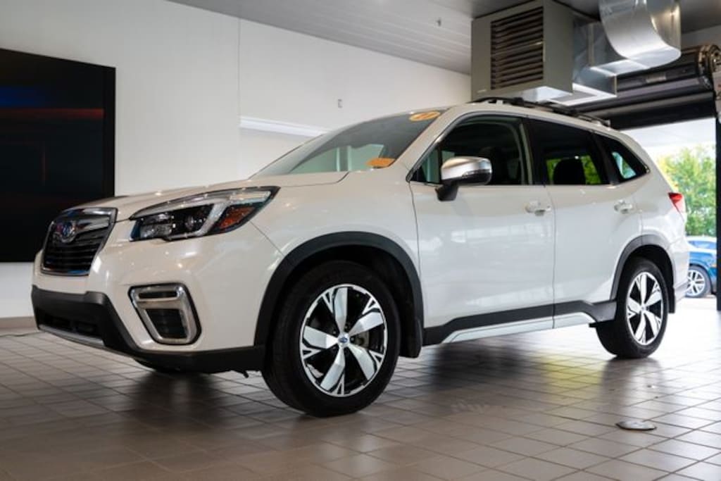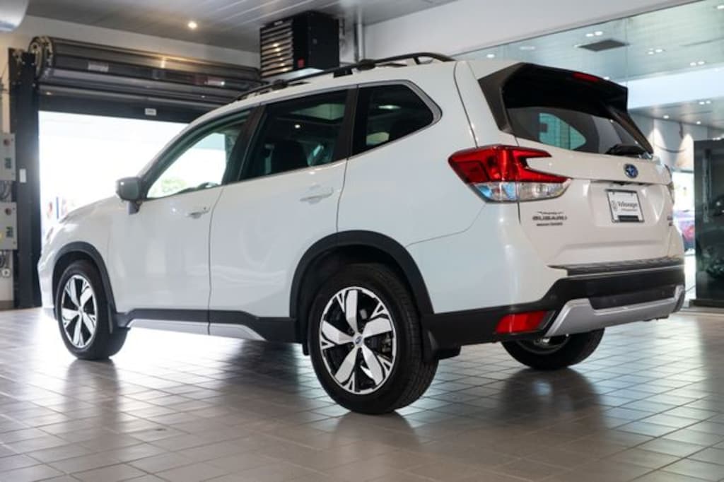 Clean Carfax, Dealer Maintained, CARFAX One Owner, NEW TIRES, Experience rugged capability and premium comfort with the 2021 Subaru Forester Touring, now available at Volkswagen of Milwaukee North. This versatile SUV features a sleek Crystal White Pearl exterior paired with a stylish Black interior, offering a sophisticated look with all-weather performance. Equipped with the top-of-the-line Touring Package, this Forester includes luxury touches like leather-trimmed seats, a panoramic sunroof, heated steering wheel, and Subaru’s cutting-edge EyeSight® Driver Assist Technology. Perfect for Milwaukee’s ever-changing seasons, the Forester’s standard Symmetrical All-Wheel Drive ensures confidence on every road. Visit Volkswagen of Milwaukee North in Milwaukee, Wisconsin, to test drive this well-equipped 2021 Subaru Forester Touring and explore competitive pricing on high-quality pre-owned vehicles., 3.70 Axle Ratio, 4-Wheel Disc Brakes, 9 Speakers, ABS brakes, Aero Crossbar Set, Air Conditioning, All-Weather Floor Liners, Alloy wheels, AM/FM radio: SiriusXM, Auto High-beam Headlights, Auto-Dimming Exterior Mirror w/Approach Lighting, Auto-Dimming Mirror w/Compass & HomeLink, Automatic temperature control, Brake assist, Bumpers: body-color, Cargo Net, CD player, Driver door bin, Driver vanity mirror, Dual front impact airbags, Dual front side impact airbags, Electronic Stability Control, Emergency communication system: STARLINK Safety and Security (Subscription Required), Exterior Parking Camera Rear, Footwell Illumination Kit, Four wheel independent suspension, Front anti-roll bar, Front Bucket Seats, Front Center Armrest, Front dual zone A/C, Front fog lights, Front reading lights, Fully automatic headlights, harman kardon 576W Amp & Speaker System, harman/kardon® Speakers, Heated door mirrors, Heated Front Bucket Seats, Heated Front Seats, Heated rear seats, Heated steering wheel, HVAC memory, Illuminated entry, Knee airbag, Leather Shift Knob, Low tire pressure warning, Memory seat, Navigation System, Occupant sensing airbag, Outside temperature display, Overhead airbag, Overhead console, Paddle-Shift Control Switches, Panic alarm, Passenger door bin, Passenger vanity mirror, Perforated Leather-Trimmed Upholstery, Popular Package #2, Power door mirrors, Power driver seat, Power Liftgate, Power moonroof: Panoramic, Power passenger seat, Power steering, Power windows, Premium audio system: harman/kardon, Radio data system, Radio: Subaru Starlink 8.0" Multimedia Nav System, Rear anti-roll bar, Rear Bumper Cover, Rear seat center armrest, Rear window defroster, Rear window wiper, Remote Keyless Entry, Roof rack: rails only, Security system, Speed control, Speed-sensing steering, Splash Guards, Split folding rear seat, Standard Model, STARLINK/Apple CarPlay/Android Auto, Steering wheel mounted audio controls, Sunshade - Windshield, Tachometer, Telescoping steering wheel, Tilt steering wheel, Traction control, Trip computer, Turn signal indicator mirrors, Variably intermittent wipers, Wheels: 18" x 7.0J Blk Machine Touring Alum Alloy.