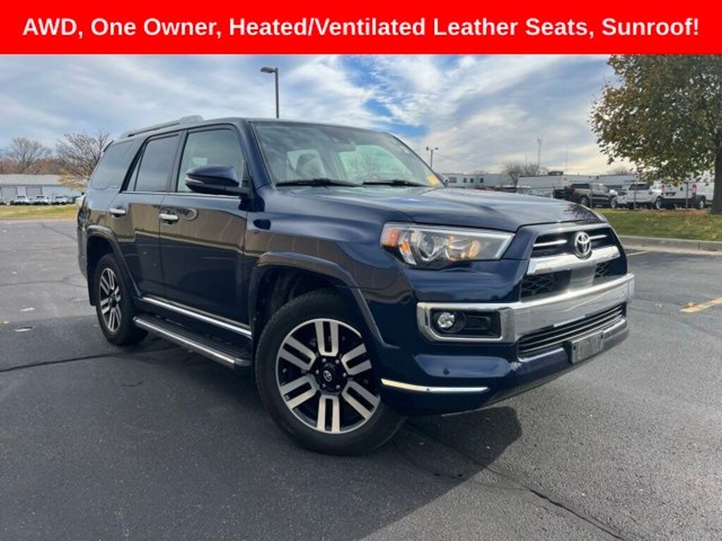 Includes 10 Year / 150,000 Mile Warranty, Experience premium capability and timeless style in the 2021 Toyota 4Runner Limited, showcased in the stunning Nautical Blue Metallic exterior and available now at Umansky Toyota in Milwaukee, Wisconsin. This upscale SUV blends rugged, off-road strength with luxury-focused refinement, featuring a warm and sophisticated Redwood interior that elevates every drive. Known for its body-on-frame durability, advanced safety features, and smooth yet commanding performance, the 4Runner Limited is ideal for Milwaukee drivers who want both adventure-ready toughness and everyday comfort. Visit Umansky Toyota to explore this exceptional 4Runner Limited and see why it remains one of the most trusted SUVs on the road!, 4WD, Redwood w/Leather Seat Trim.