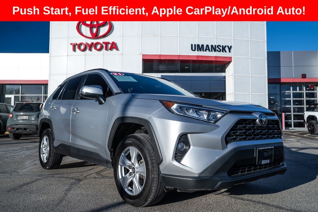 Includes 10 Year / 150,000 Mile Warranty, Experience versatility, comfort, and reliability in the 2021 Toyota RAV4 XLE, finished in sleek Silver Sky Metallic and available now at Umansky Toyota in Milwaukee, Wisconsin. This popular compact SUV delivers a smooth, efficient drive with a refined balance of power and fuel economyâ"perfect for both urban commutes and weekend exploration. The stylish Black interior offers premium comfort, advanced connectivity with Apple CarPlay® and Android AutoTM, and flexible cargo space designed for your active lifestyle. With Toyota Safety SenseTM 2.0, available all-wheel drive, and a confident, modern design, the RAV4 XLE provides safety, capability, and convenience in every mile. Visit Umansky Toyota in Milwaukee today to test drive the 2021 Toyota RAV4 XLE and discover why it remains one of Toyotaâs most trusted SUVs!, Black w/Fabric Seat Trim.