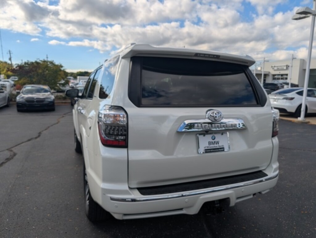 Explore rugged capability and premium comfort with the 2022 Toyota 4Runner Limited, featuring a stunning Blizzard Pearl exterior and refined Mocha interior, available now at BMW of Milwaukee North in Milwaukee, Wisconsin. This versatile SUV is built for adventure with its legendary body-on-frame construction, powerful V6 engine, and advanced 4WD systemâ"perfect for tackling Wisconsinâs changing seasons. Inside, the 4Runner Limited offers luxury touches like leather-trimmed seats, a premium audio system, and intuitive tech for a comfortable and connected ride. Donât miss your chance to own this dependable and stylish SUVâ"visit BMW of Milwaukee North today for a test drive., 4Runner Limited, 4D Sport Utility, 4.0L V6 DOHC 24V, 4WD, Blizzard Pearl, Redwood Leather.