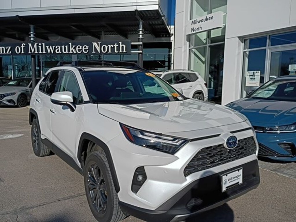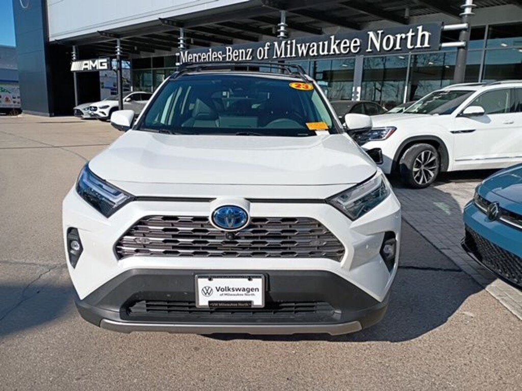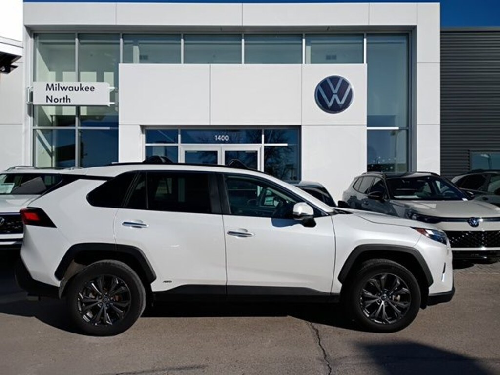 Clean Carfax, Dealer Maintained, Local Trade, Discover the exceptional 2023 Toyota RAV4 Hybrid Limited in stunning Wind Chill Pearl with a sleek Black interior, now available at Volkswagen of Milwaukee North in Milwaukee, Wisconsin. This fuel-efficient hybrid SUV delivers a perfect blend of style, capability, and advanced technology, highlighted by the premium Limited Package featuring upscale comfort, enhanced safety systems, and cutting-edge connectivity. With its impressive hybrid performance, spacious interior, and refined design, the 2023 RAV4 Hybrid is ideal for Milwaukee drivers seeking reliability and luxury in every drive. Visit Volkswagen of Milwaukee North to explore this standout RAV4 Hybrid and experience its efficiency, versatility, and sophisticated craftsmanship firsthand., 2.5L 4-Cylinder. Odometer is 22972 miles below market average! Priced below KBB Fair Purchase Price!