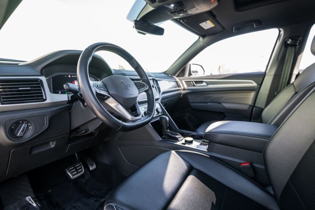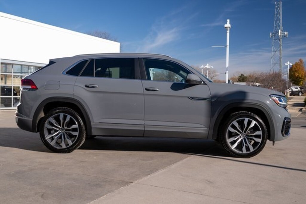 Atlas Cross Sport 3.6L V6 SEL R-Line, 4D Sport Utility, 3.6L VR6, AWD, Gray, Titan Black Leather, 3.60 Axle Ratio, 4-Wheel Disc Brakes, 6 Speakers, ABS brakes, Active Blind Spot Monitor, Air Conditioning, Alloy wheels, AM/FM radio: SiriusXM with 360L, Auto High-beam Headlights, Auto-dimming Rear-View mirror, Automatic temperature control, Brake assist, Bumpers: body-color, Compass, Delay-off headlights, Driver door bin, Driver vanity mirror, Dual front impact airbags, Dual front side impact airbags, Electronic Stability Control, Emergency communication system: VW Car-Net services (capabilities require enrollment or subscription), Exterior Parking Camera Rear, Four wheel independent suspension, Front anti-roll bar, Front Bucket Seats, Front Center Armrest, Front dual zone A/C, Front fog lights, Front reading lights, Fully automatic headlights, Heated Comfort Front Bucket Seats, Heated door mirrors, Heated front seats, Heated steering wheel, Illuminated entry, Leather Shift Knob, Low tire pressure warning, Memory seat, Navigation System, Occupant sensing airbag, Outside temperature display, Overhead airbag, Overhead console, Panic alarm, Passenger door bin, Passenger vanity mirror, Perforated V-Tex Leatherette Seating Surfaces, Power door mirrors, Power driver seat, Power Liftgate, Power moonroof, Power passenger seat, Power steering, Power windows, Radio data system, Radio: MIB3 Discover Media w/8" Touchscreen Navigation, Rain sensing wipers, Rear anti-roll bar, Rear reading lights, Rear seat center armrest, Rear window defroster, Rear window wiper, Remote keyless entry, Roof rack: rails only, Security system, Speed control, Speed-sensing steering, Split folding rear seat, Spoiler, Sport steering wheel, Standard Suspension, Steering wheel mounted audio controls, Tachometer, Telescoping steering wheel, Tilt steering wheel, Traction control, Trip computer, Turn signal indicator mirrors, Variably intermittent wipers, and Wheels: 21" Two-Tone Machined Alloy.
